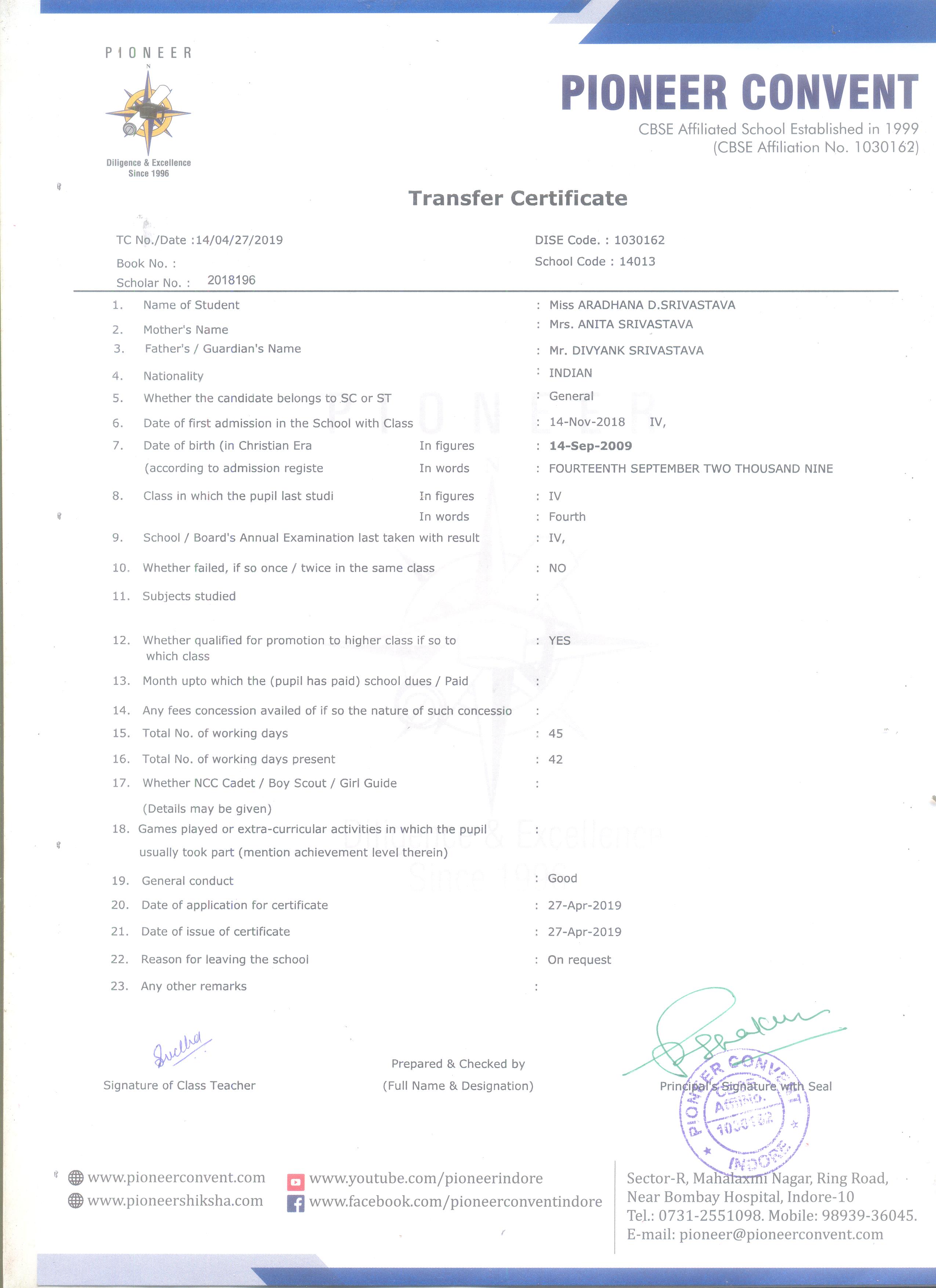 Transfer Certificate